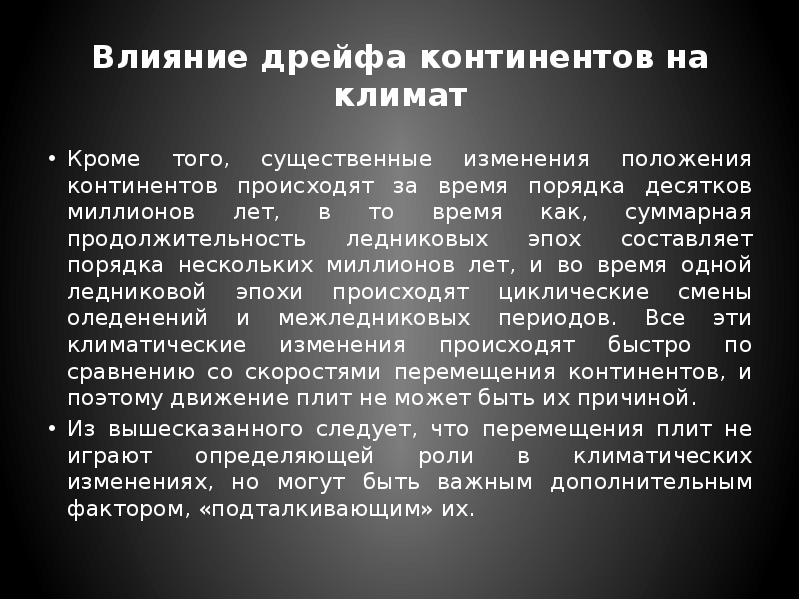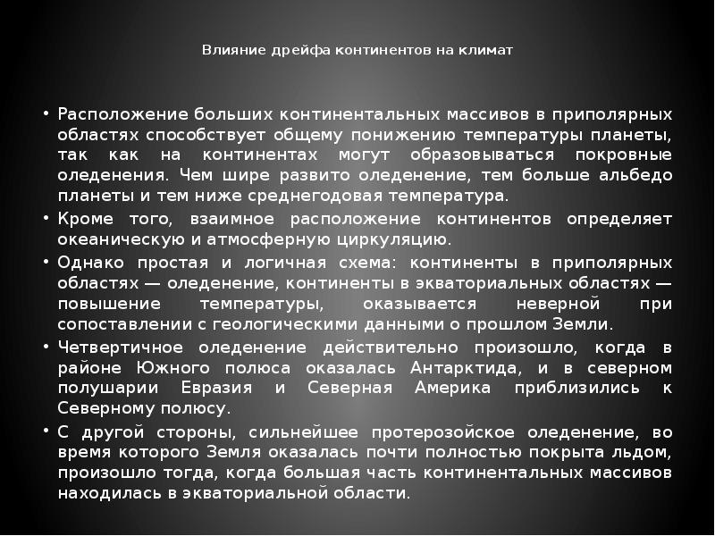 - 6. Влияние дрейфа континентов на климат Кроме того, существенные изменения положения континентов