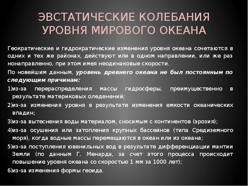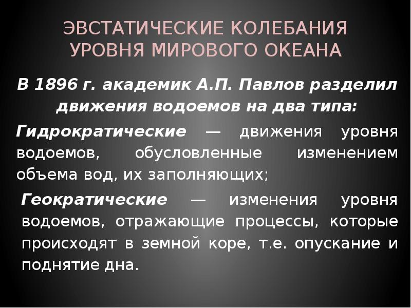 - 7. ЭВСТАТИЧЕСКИЕ КОЛЕБАНИЯ УРОВНЯ МИРОВОГО ОКЕАНА В 1896 г. академик А.П. Павлов