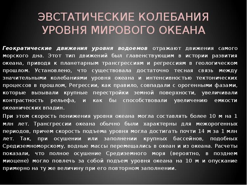 - 16. Эвстатические колебания Эвстатические колебания уровня моря- повсеместно прослеживаемые медленные изменения уровня