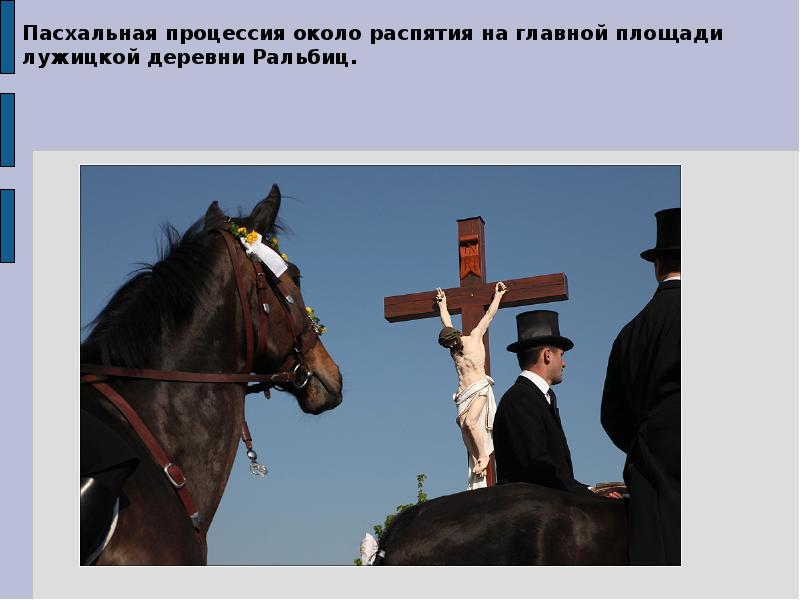 - 8. Широко известны пасхальные традиции лужичан: Osterreiten (традиционный верховая езда течение Пасхи)