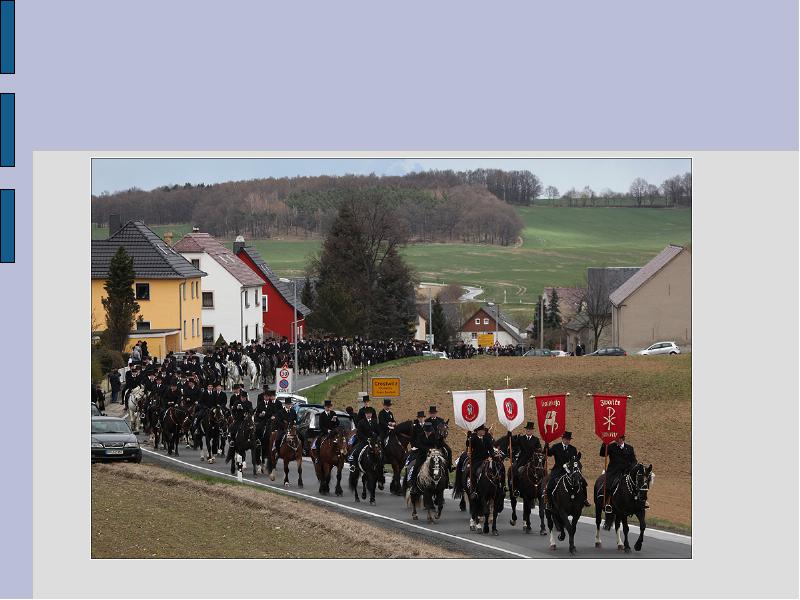 - 12. Остеррайтен (нем. Osterreiten; в.-луж. Křižerjo) — пасхальная конная процессия — старинная традиция лужицких сербов, проживающих в Саксонии и Бранденбурге. Обряд проводится в католической Верхней
