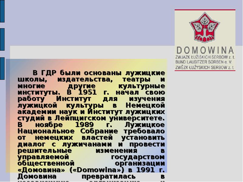 - 6. В 1918-1919 гг. лужицкие политики попытались создать свободное Лужицкое государство. Но
