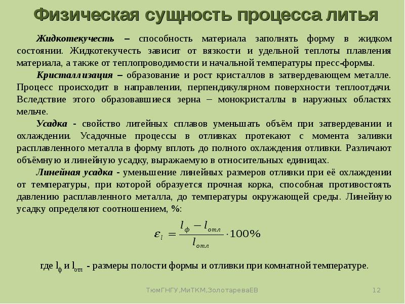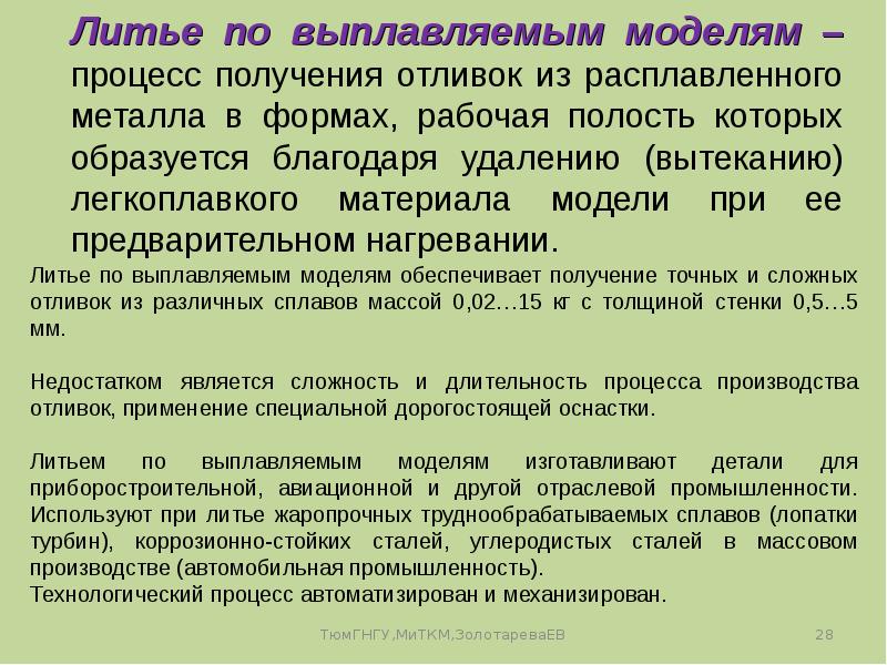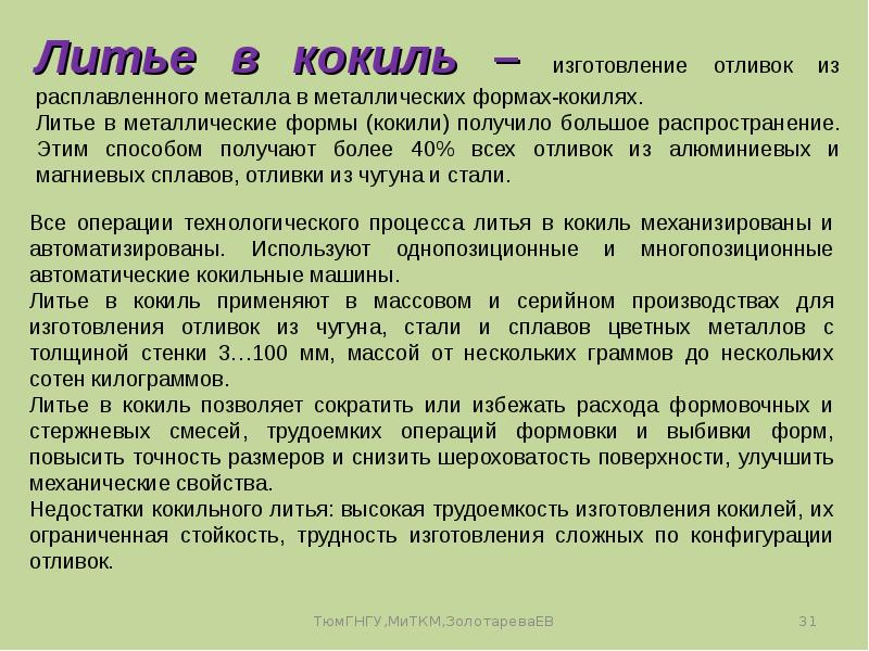 Материаловедение. Основы литейного производства. (Тема 10) презентация
