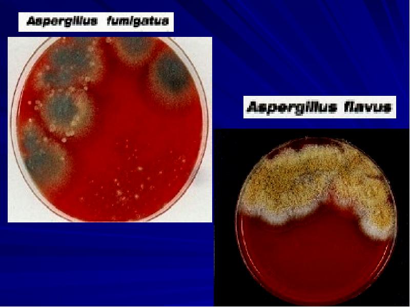 - 81. Афлотоксикозы Aspergillus fumigatus Aspergillus flavus Грибы развиваются на злаках (рис, кукуруза,