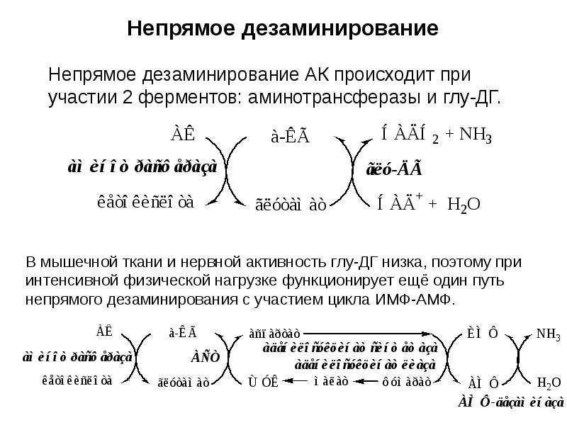 - 23. Б. Непрямое дезаминирование АК происходит в 2 стадии с участием нескольких