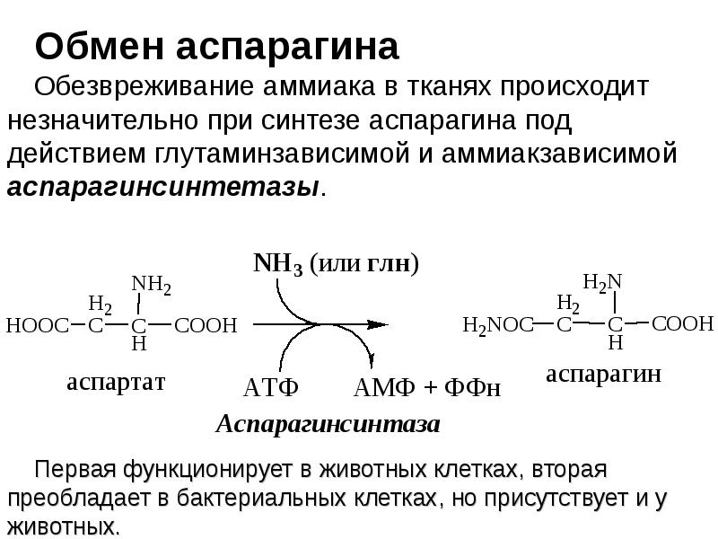 - 3. Реакции использования и обезвреживания аммиака: образование глутамина, аспарагина, мочевины. Тканевые особенности.