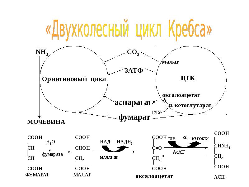 - 56. Взаимосвязь орнитинового цикла с ЦТК Взаимосвязь орнитинового цикла с ЦТК Для