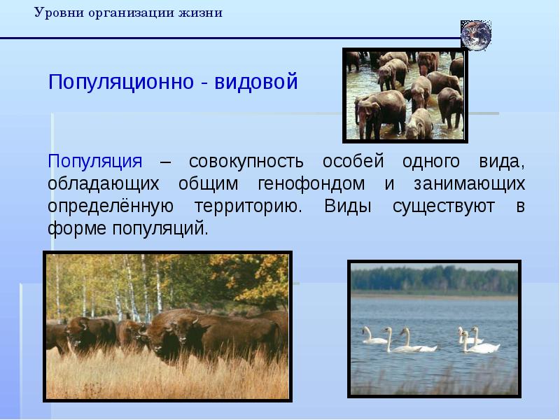 - 27. ПОПУЛЯЦИОННО-ВИДОВОЙ УРОВЕНЬ Представлен в природе огромным разнообразием видов и их