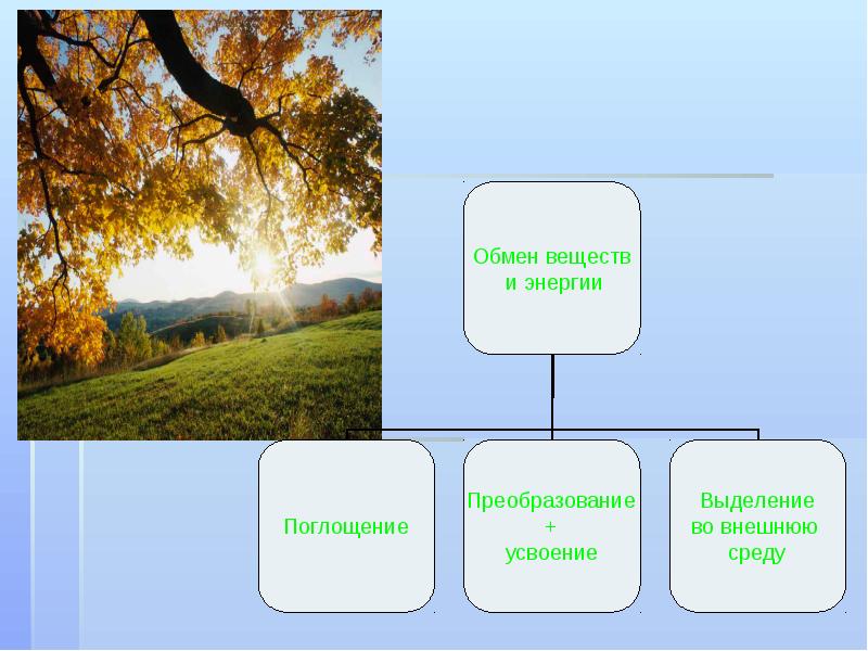 - 7. Общие свойства живых организмов Обмен веществ и энергии обеспечивает постоянную связь