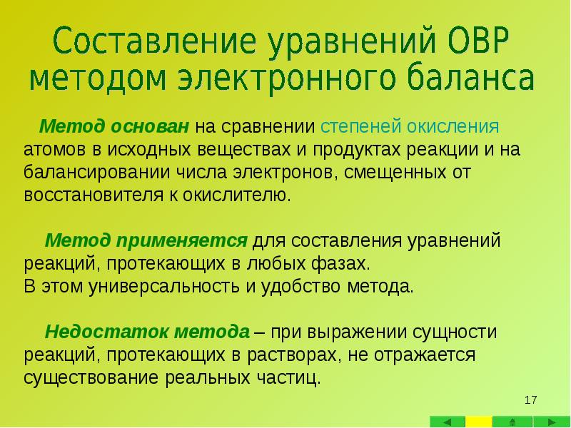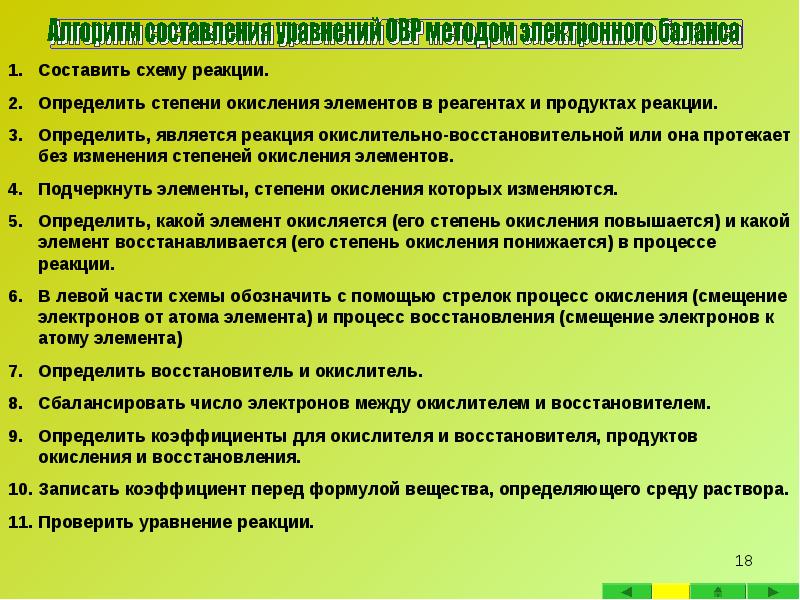 - 16. Электронный баланс - метод нахождения коэффициентов в уравнениях окислительно-восстановительных реакций,