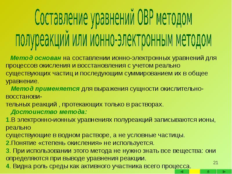 - 20. B Электронно-ионный баланс (метод полуреакций) - метод нахождения коэффициентов, в котором