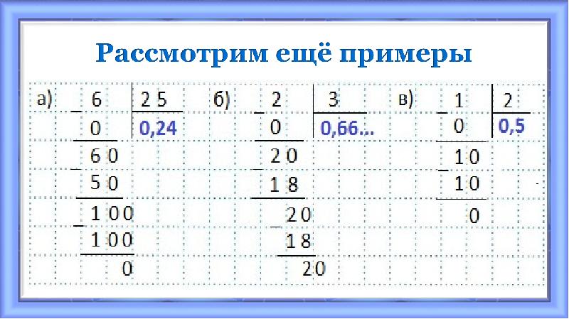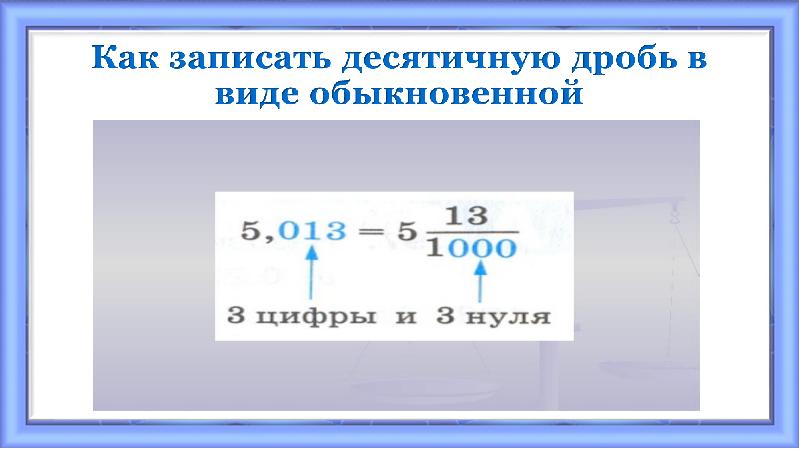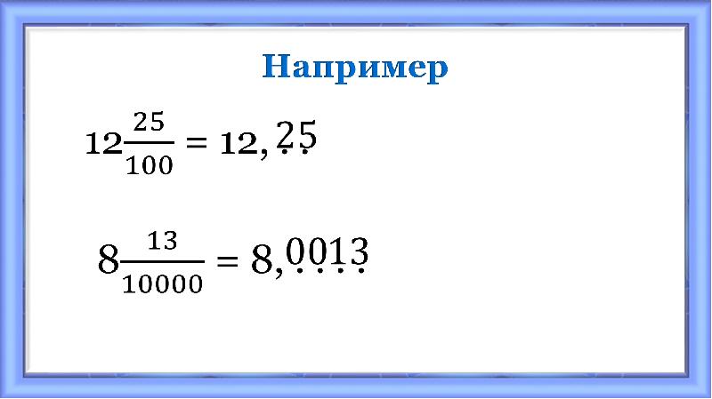 - 10. Алгоритм записи обыкновенной дроби в виде десятичной (т.е. без знаменателя) Записываем