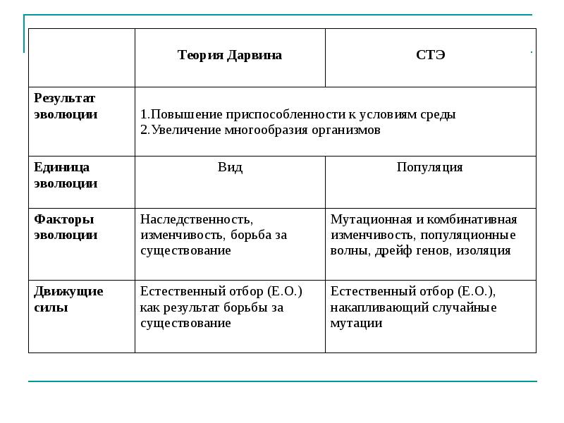 - 7. СТЭ (синтетическая теория эволюции)= дарвинизм + генетика