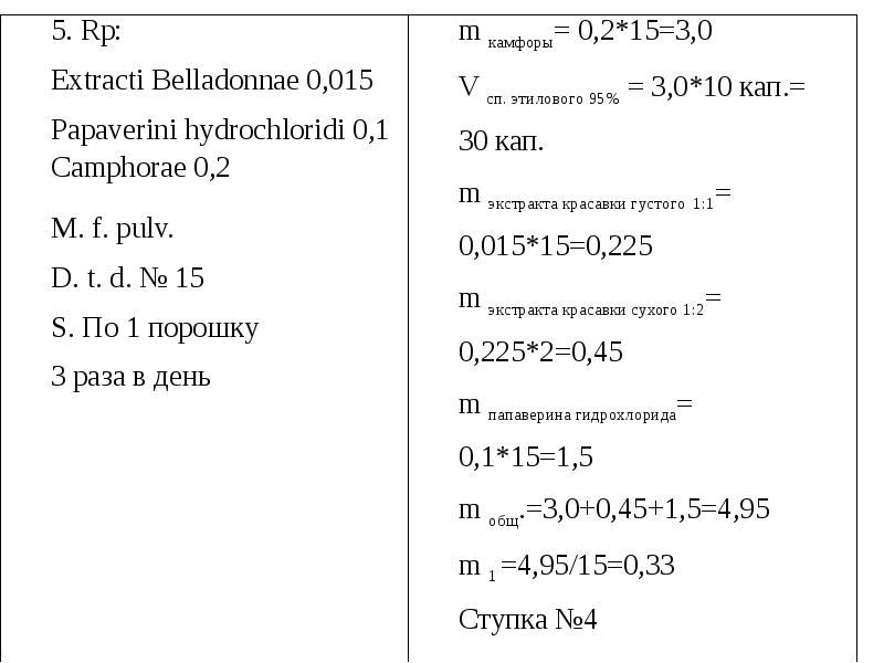 В первом случае, ингредиенты выписаны вПорядок изготовления порошков: