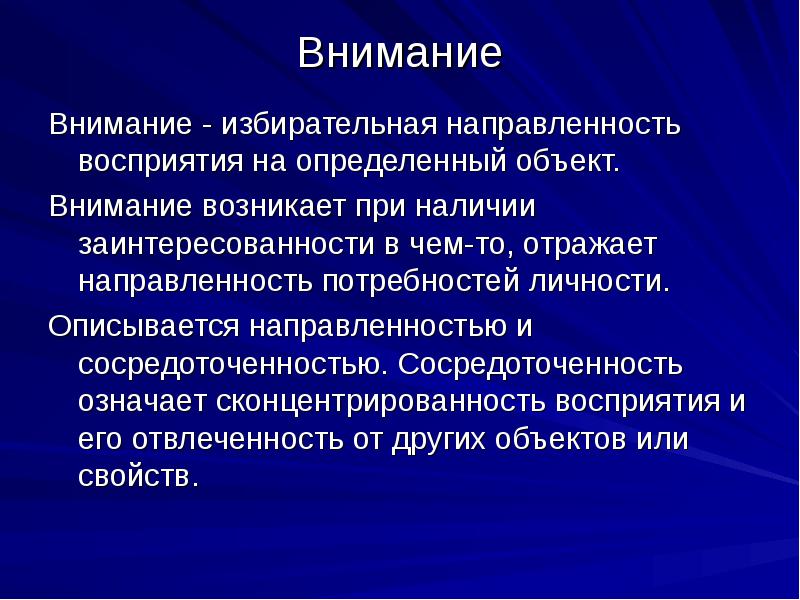 - 13. Внимание Внимание - избирательная направленность восприятия на определенный объект. Внимание возникает