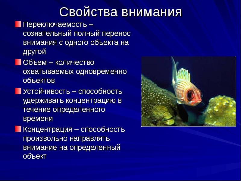 - 14. Свойства внимания Переключаемость – сознательный полный перенос внимания с одного объекта