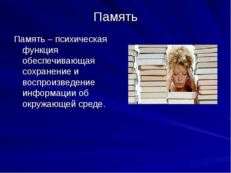 - 16. Память Память – психическая функция обеспечивающая сохранение и воспроизведение информации об
