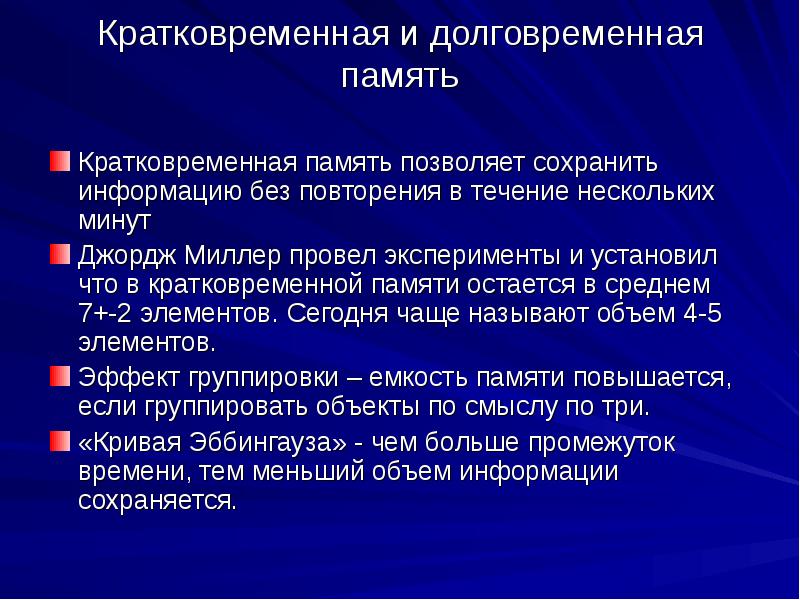 - 19. Кратковременная и долговременная память Кратковременная память позволяет сохранить информацию без повторения