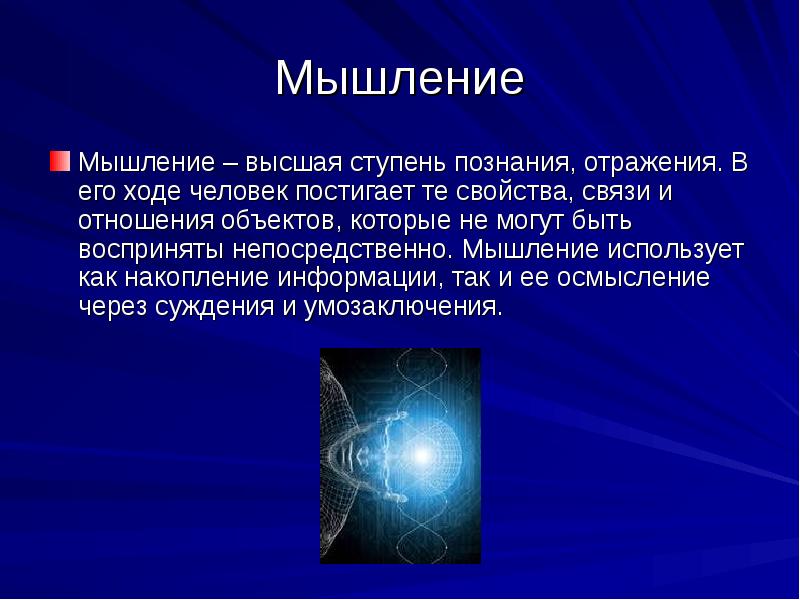 - 20. Мышление Мышление – высшая ступень познания, отражения. В его ходе человек