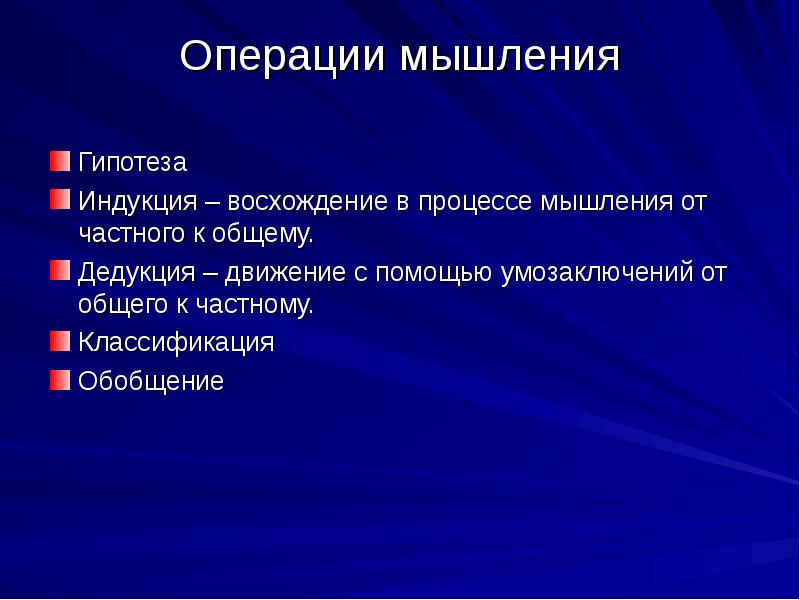 - 23. Операции мышления Гипотеза Индукция – восхождение в процессе мышления от частного
