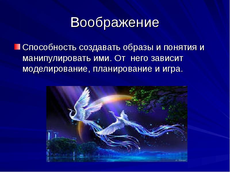 - 27. Воображение Способность создавать образы и понятия и манипулировать ими. От него