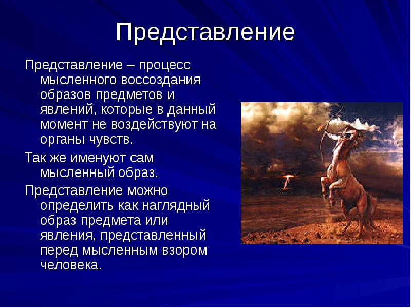 - 29. Представление Представление – процесс мысленного воссоздания образов предметов и явлений, которые