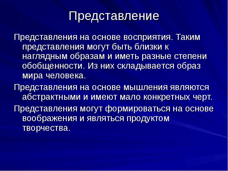 - 30. Представление Представления на основе восприятия. Таким представления могут быть близки к