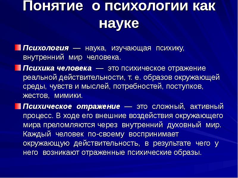 - 6. Понятие о психологии как науке Психология — наука, изучающая психику,