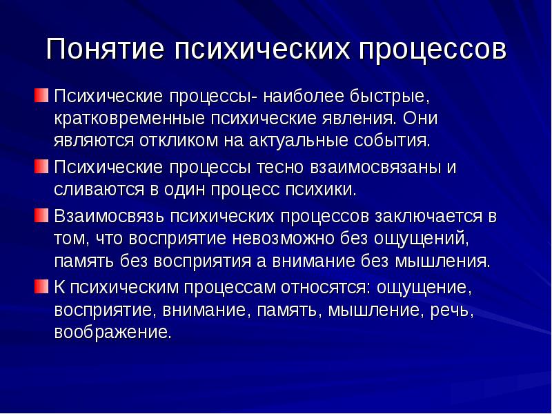 - 8. Понятие психических процессов Психические процессы- наиболее быстрые, кратковременные психические явления. Они
