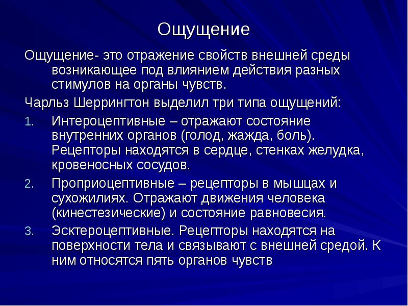 - 9. Ощущение Ощущение- это отражение свойств внешней среды возникающее под влиянием действия