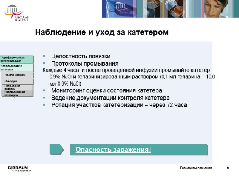 - 73. НАБЛЮДЕНИЕ ЗА МЕСТОМ КАТЕТЕРИЗАЦИИ ПОЯВЛЕНИЕ ПОКРАСНЕНИЯ ПОЯВЛЕНИЕ ОТЕЧНОСТИ ДИСКОМФОРТНОЕ СОСТОЯНИЕ ПОЯВЛЕНИЕ