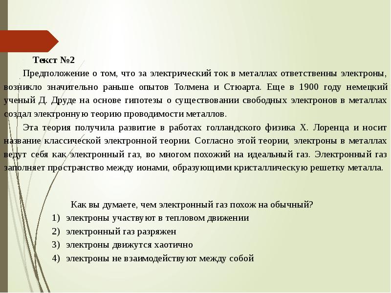 Работа с текстом. Электрический ток в цепи презентация