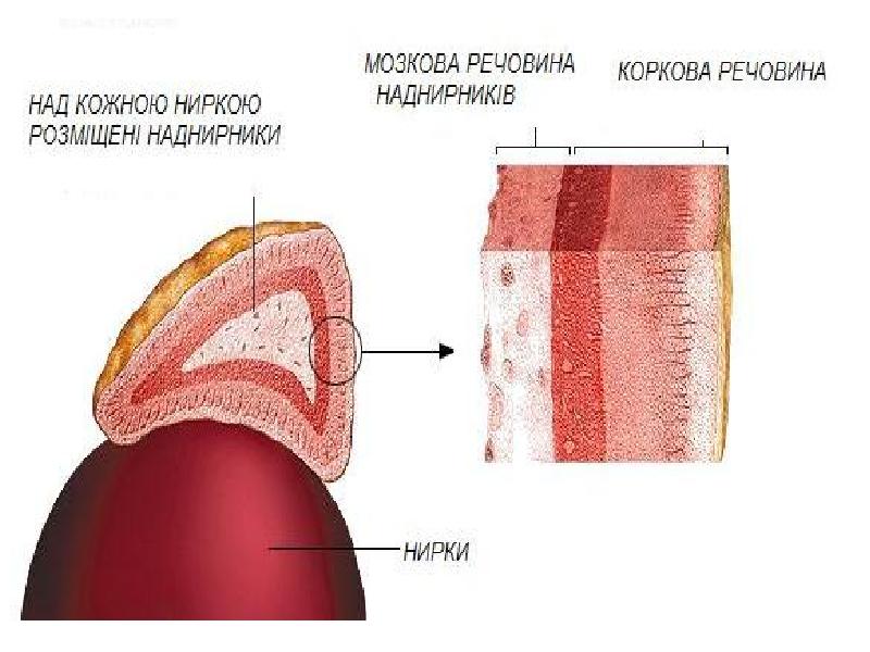 - 25. Надниркові залози Кірковий шар продукує біля 50 гормонів-кортикостероїдів, що класифікуються на
