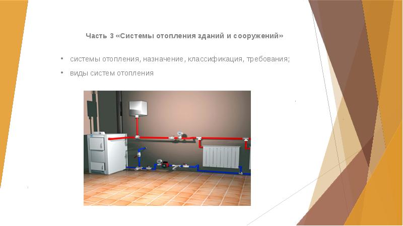 - 26. системы отопления, назначение, классификация, требования Отопление искусственное обогревание помещений здания