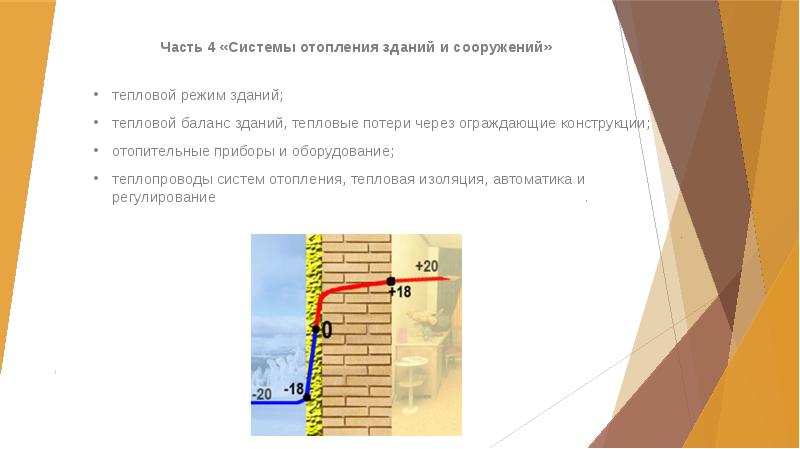 - 40. тепловой режим зданий Тепловой режим здания - совокупность всех факторов и