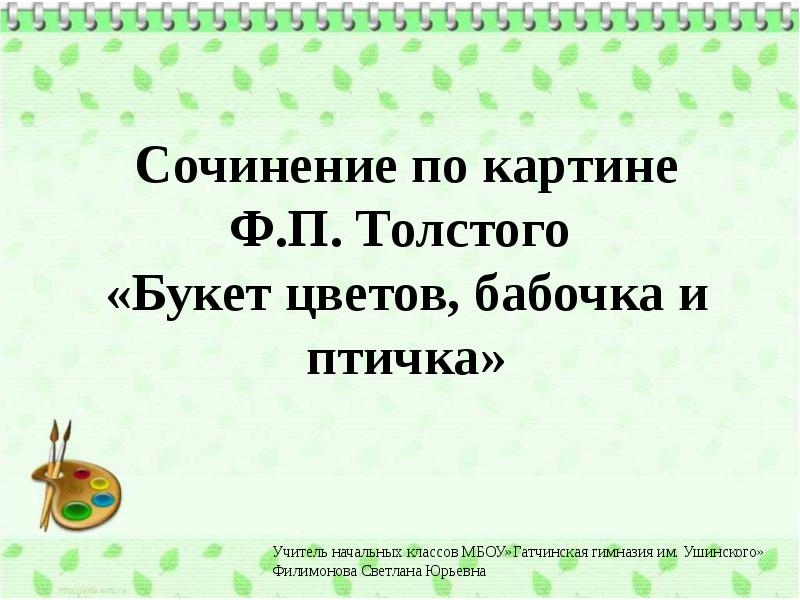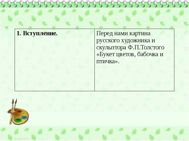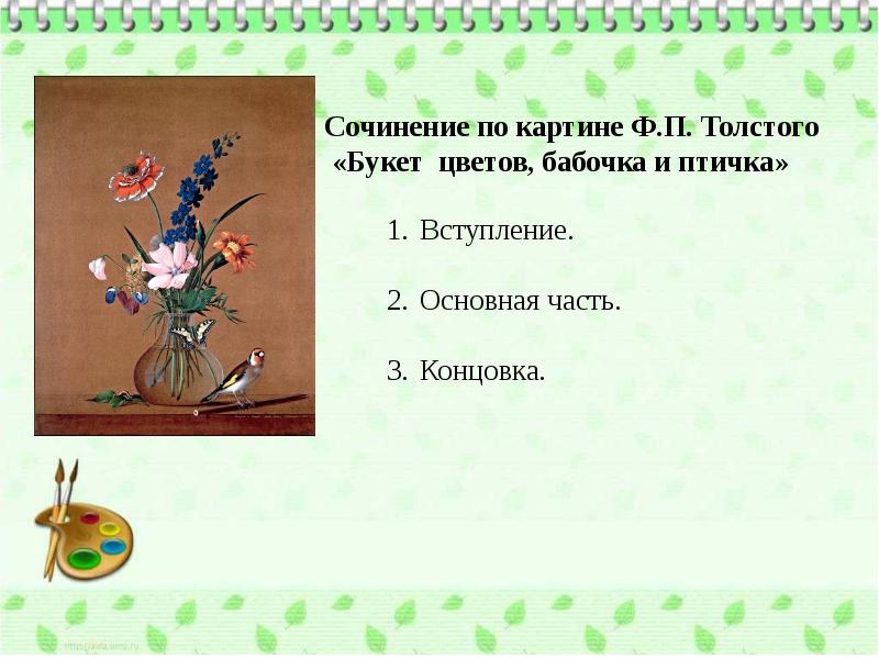 Сочинение по картине Ф.П. Толстого «Букет цветов, бабочка и птичка» презентация