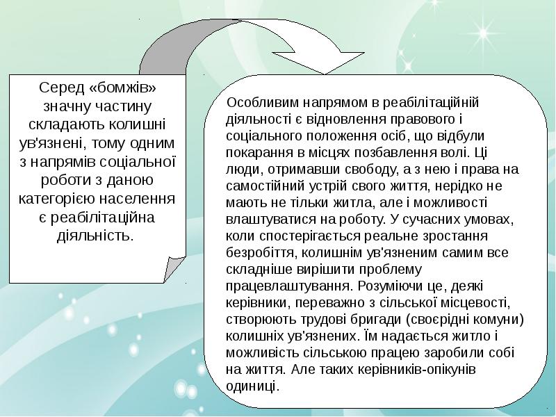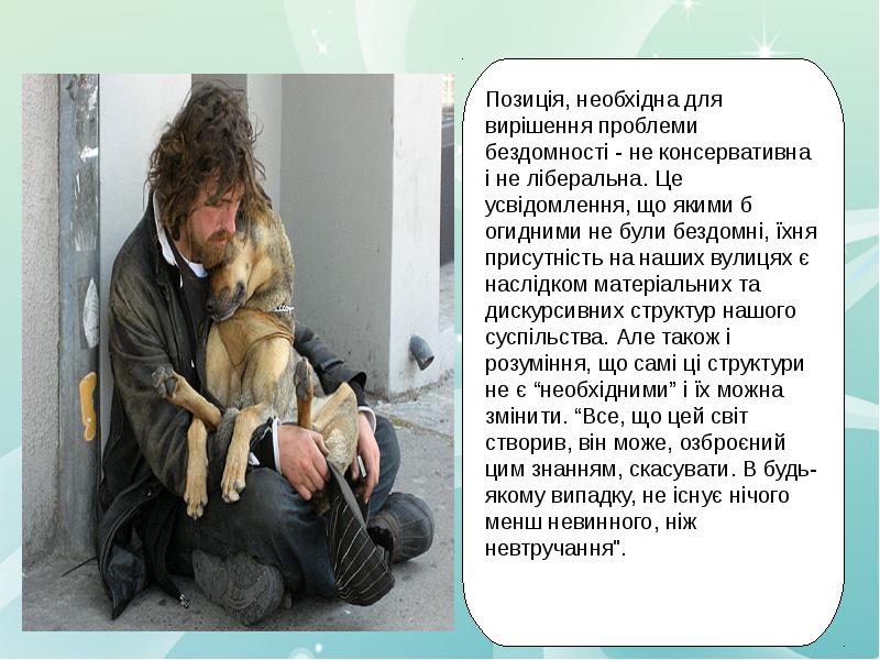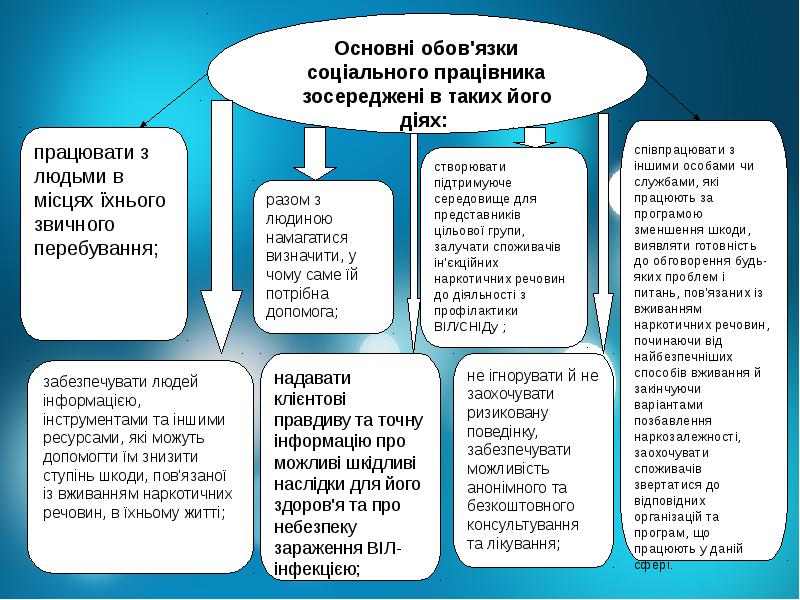 Основним завданням роботи на вулиці є необхідність встановлення початкового контакту з соціальним працівником і налагодження двохстороннього зв'язку на елементарному, побутовому рівні. З цією метою бездомним пропонується ряд соціальних послуг, які не вимагають глибокої довіри з боку бездомного до соціального працівника. Це досягається, наприклад через безкоштовне розповсюдження гарячих обідів, вживаного одягу, елементарних засобів особистої гігієни, надання елементарної медичної допомоги. Проте, важливим є регулярність такої роботи, що сприяє відновленню самодисципліни у бездомних - адже щоб отримати те чи інше, вони зобов'язані у визначений час з'явитися у тому чи іншому визначеному місці. Відіграє також свою роль залучення до роботи в якості помічників бездомних, які в процесі ресоціалізації знаходяться на вищих ступенях - таким чином можливим є ефект спрацювання успішного прикладу, та, або більший ступінь довіри до вчорашнього бездомного, ніж по відношенню до соціального працівника. Під час такої роботи необхідно постійно інформувати бездомних про послуги стаціонарного закладу, про можливість вирішення за допомогою соціальних працівників тих чи інших потреб бездомних, з метою спонукати їх скористатися послугами стаціонарного центру.