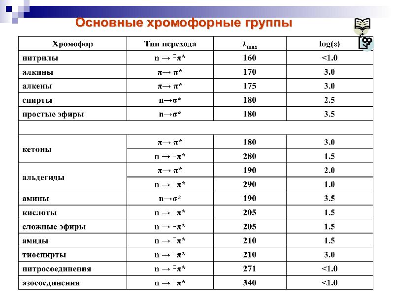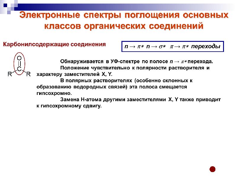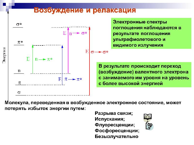 - 25. УФ-спектроскопия Возможны четыре типа электронных переходов со связывающих и несвязывающих орбиталей