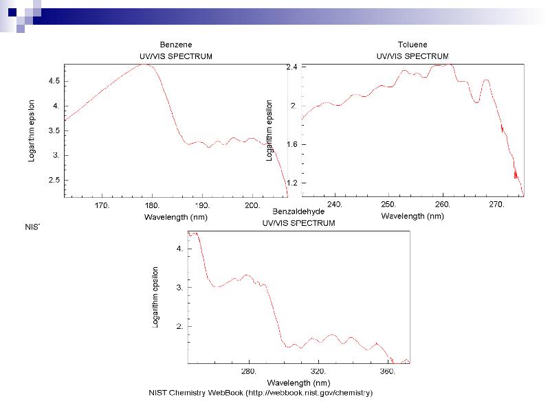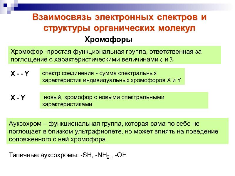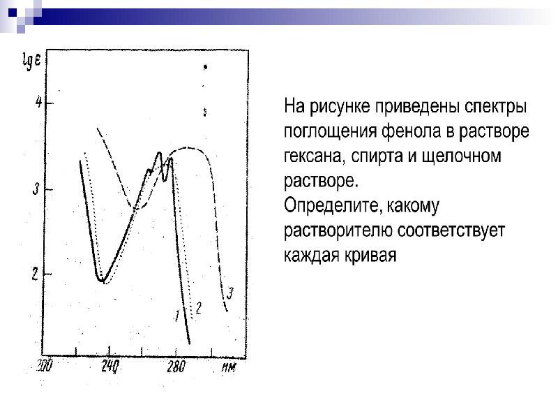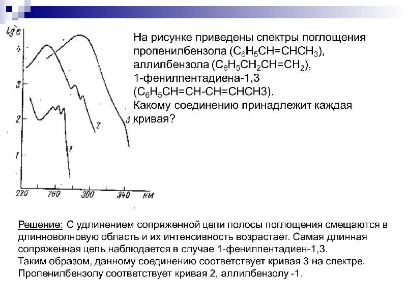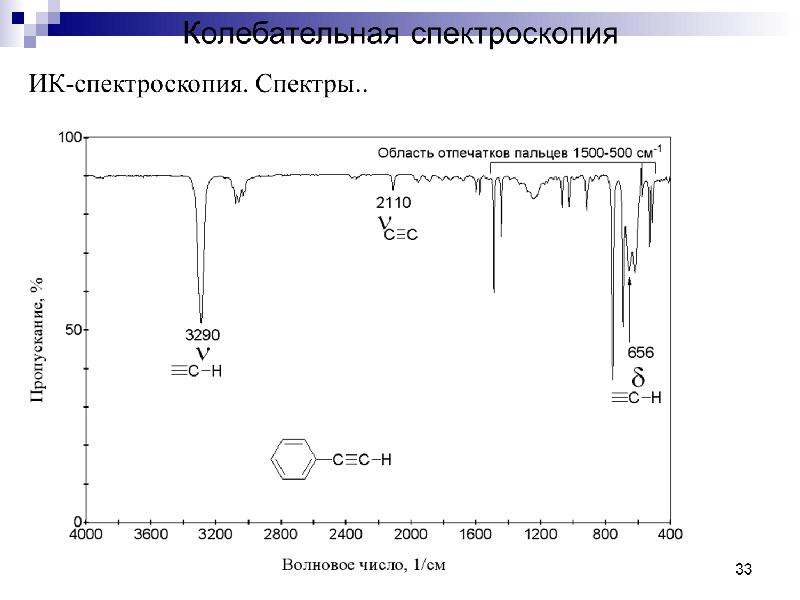 - 33. УФ-спектроскопия Положение полос поглощения в УФ-спектре зависит от строения молекулы.