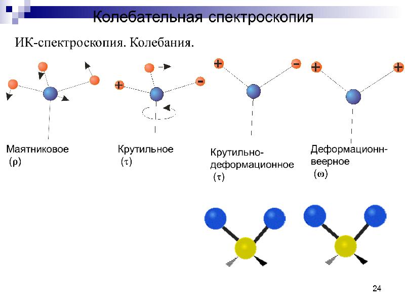 - 59. ИК-спектроскопия Деформационные колебания (δ) связаны с изменением углов между связями.