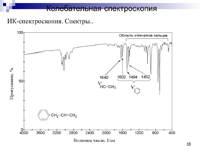 - 65. ИК-спектроскопия Характеристические полосы поглощения в ИК-спектре дают все колебания связей,