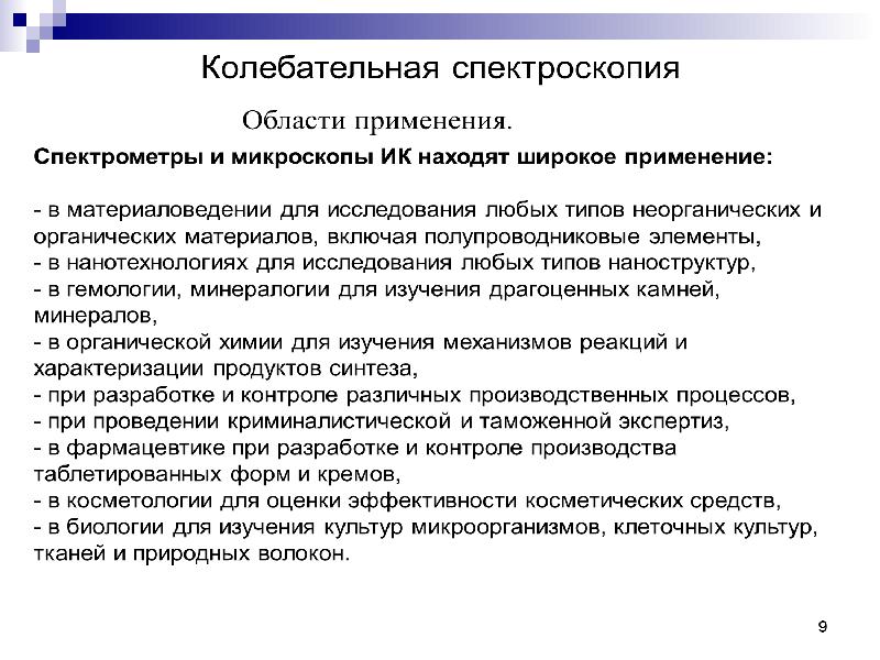 - 69. ИК-спектроскопия Интерпретация ИК-спектров. Строгих правил для интерпретации ИК-спектров не существует.
