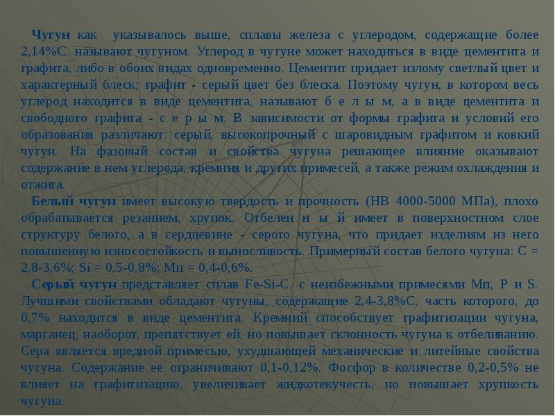 - 23. Чугуны. Чугунами называют железоуглеродистые сплавы, содержащие более 2 %. углерода.