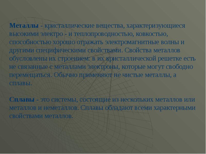 - 16. СТРОЕНИЕ МЕТАЛЛОВ Металлы представляют собой кристаллические тела с закономерным расположением атомов