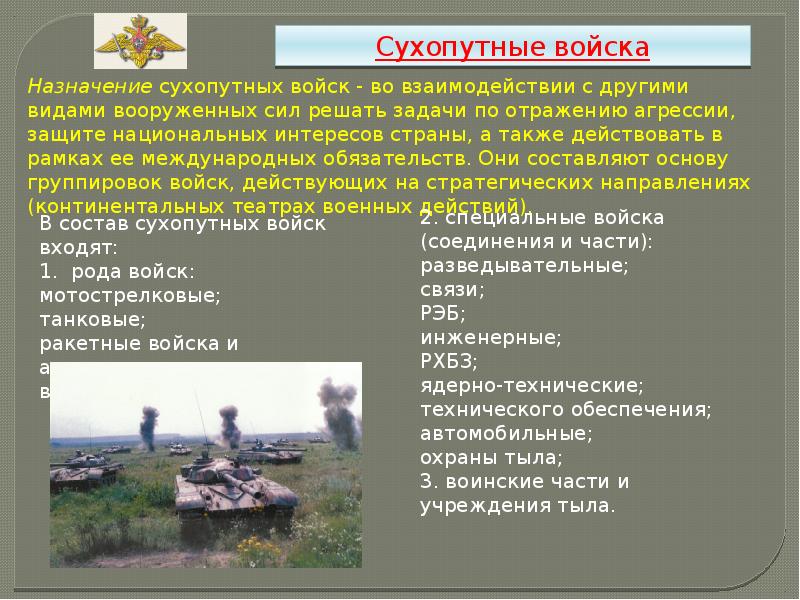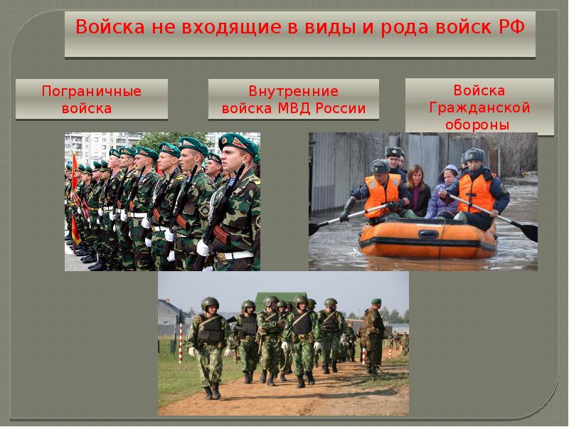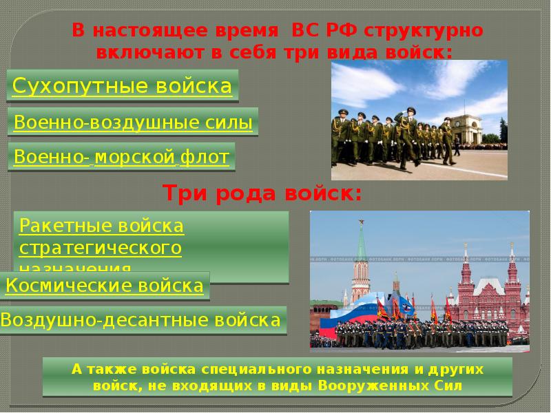 - 7. Виды и рода войск ВС РФ В настоящее время Вооруженные