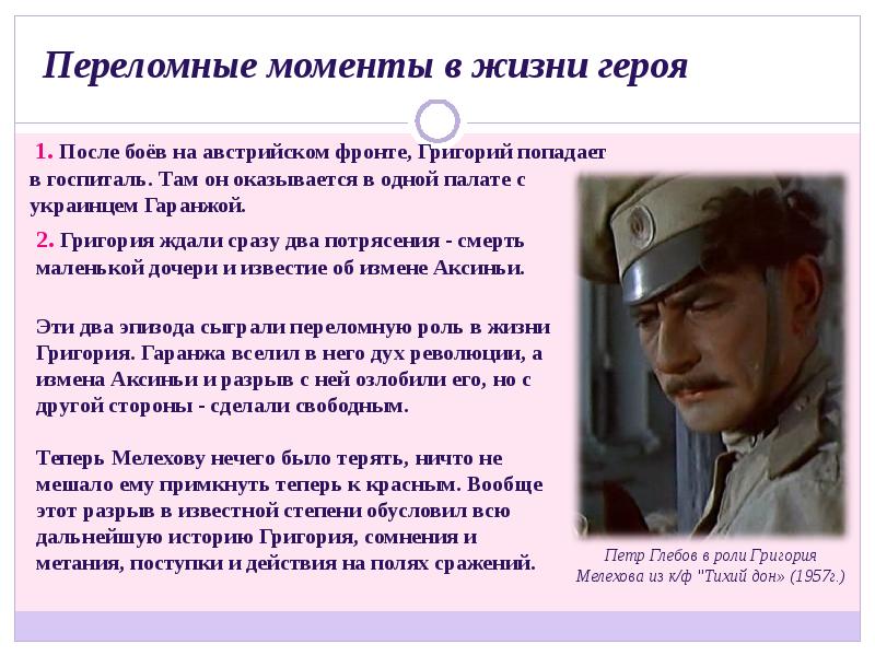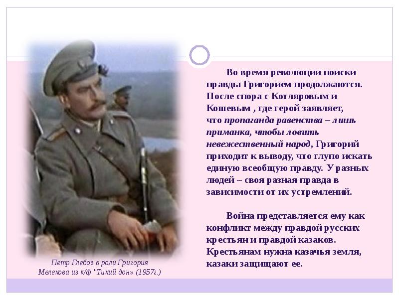 Судьба Григория Мелехова в романе Михаила Шолохова «Тихий Дон» презентация