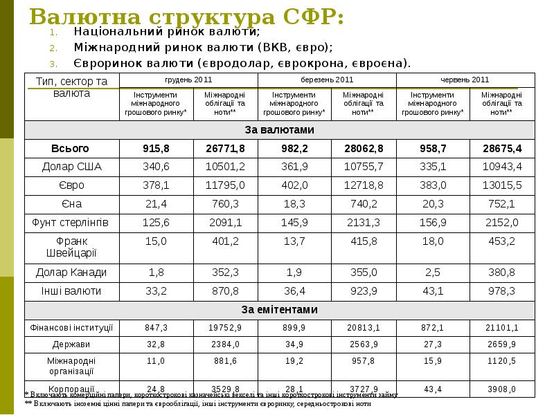 - 31. Професійні суб’єкти СФР 1) Міжнародні організації; 2) Трастові компанії (акціонерний капітал