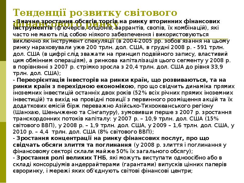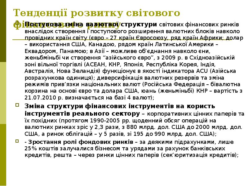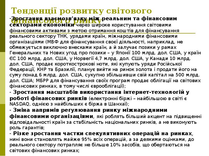 - 42. Чинники глобалізації світових фінансових ринків