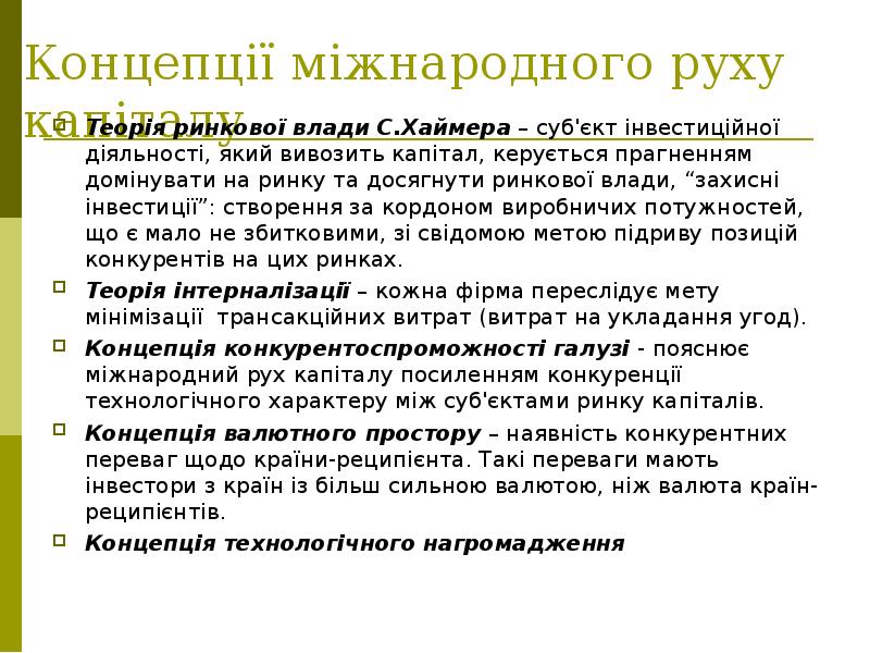 - 2. 1. Міжнародний рух капіталу: поняття та теоретичні концепції Міжнародний рух капіталу
