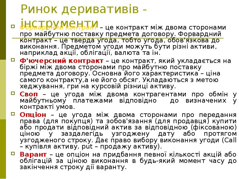 - 54. Умови функціонування широкий спектр інструментів фінансового ринку, який забезпечує інвесторам та